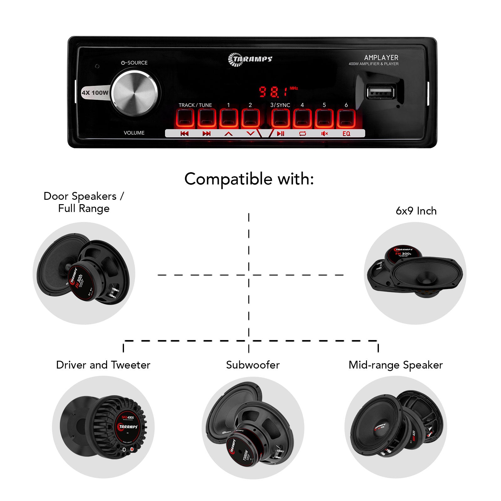 Elevate your car audio with the Taramps Amplayer 400. This amplifier delivers a solid 400 WRMS, supports versatile 'Bridge' connections, and features a long-distance remote for easy control. Integrated crossovers enhance your sound experience, making it a top choice for audio enthusiasts.