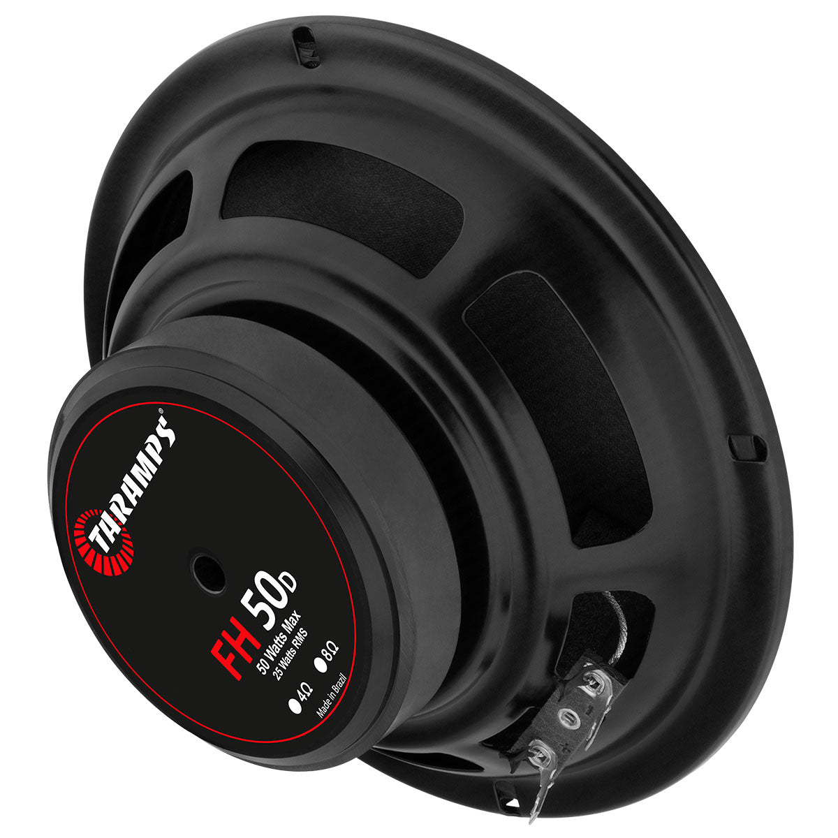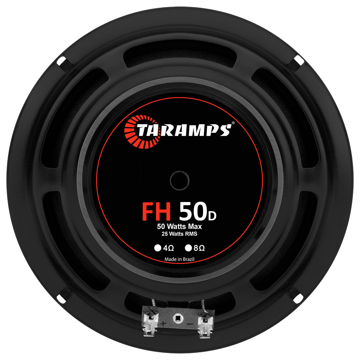 The FH 50D loudspeaker is expertly crafted for exceptional sound quality, offering a wide frequency response of 90Hz to 20,000Hz for the 6-inch model and 90Hz to 21,000Hz for the 5-inch model. Featuring a cellulose whizzer cone, both provide outstanding mid-bass and treble performance, ensuring a remarkable listening experience. Elevate your audio with Taramps!