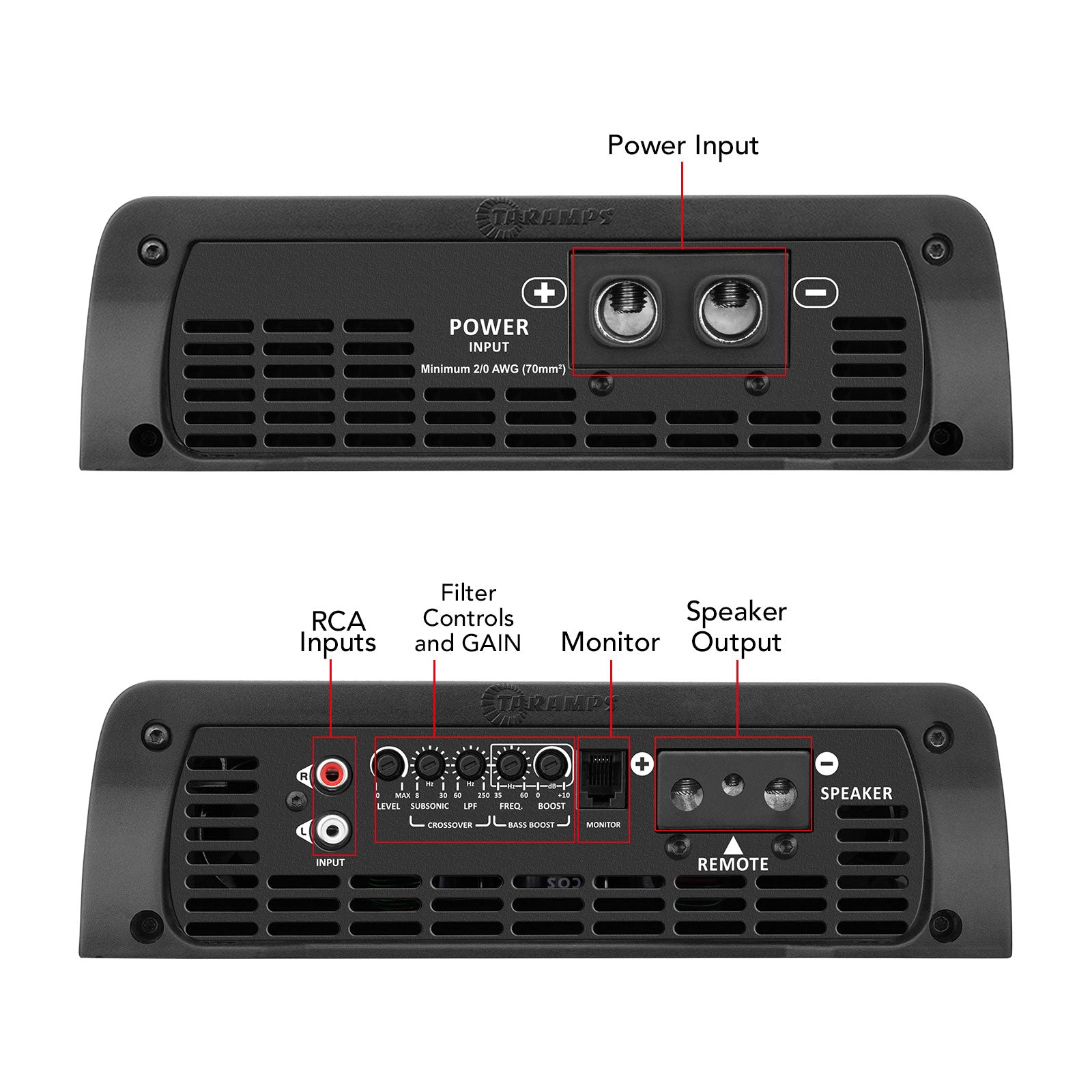 @ 14.4 VDC - 1 Ohm: 5000 Watts RMS @ 14.4 VDC - 2 Ohms: 3200 Watts RMS