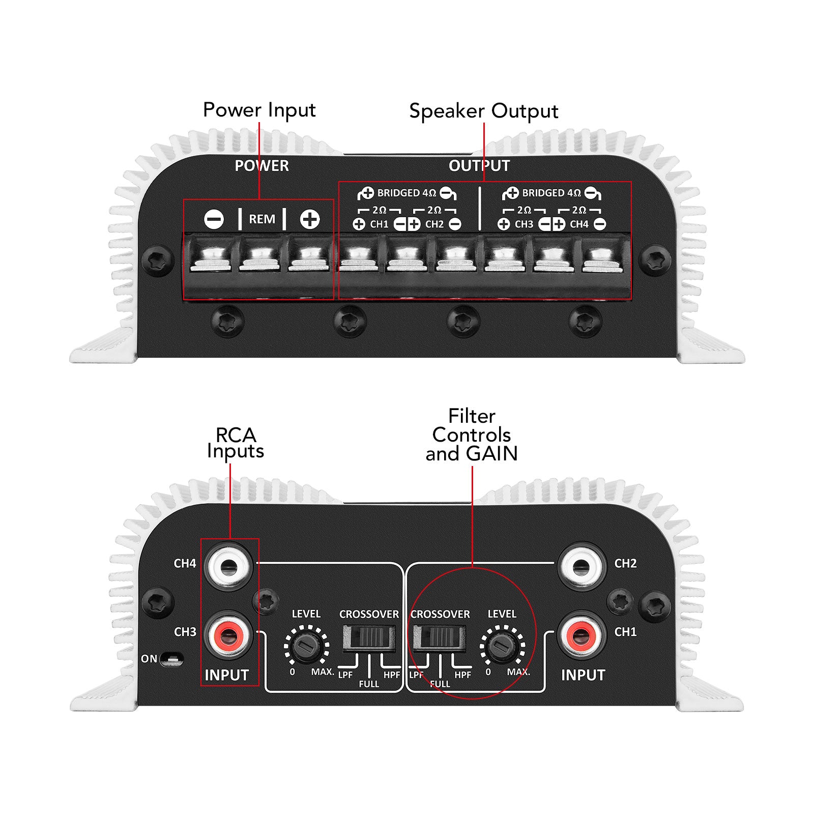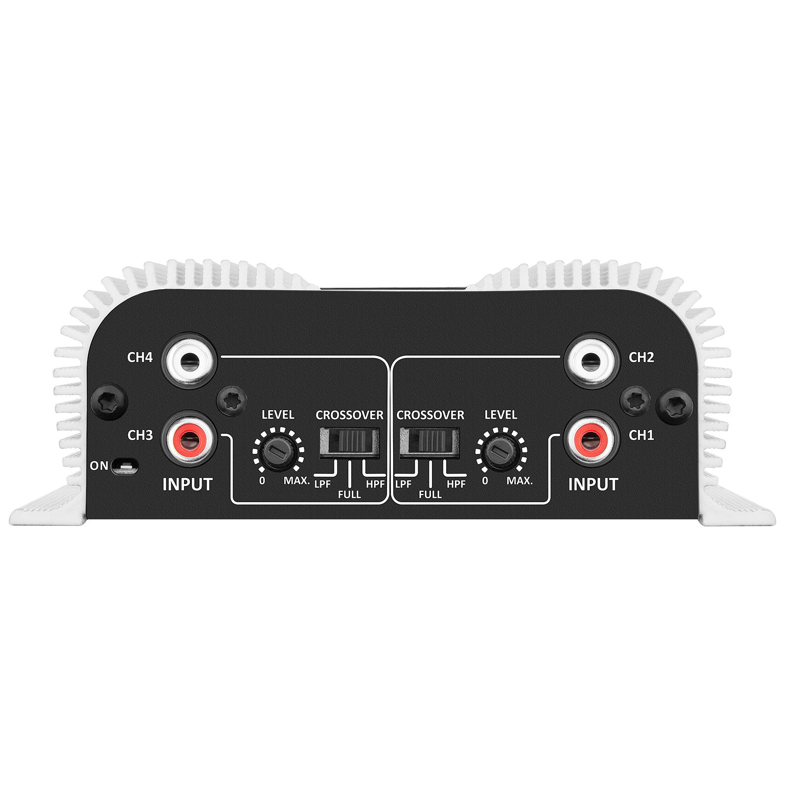 @ 13,8 VDC - 2 OHMS - 400 W RMS (4 x 100W RMS) @ 13,8 VDC - 4 OHMS - 252 W RMS (4 x 63W RMS) Bridge @ 13,8 VDC - 4 OHMS - 400W RMS (2 x 200W RMS)